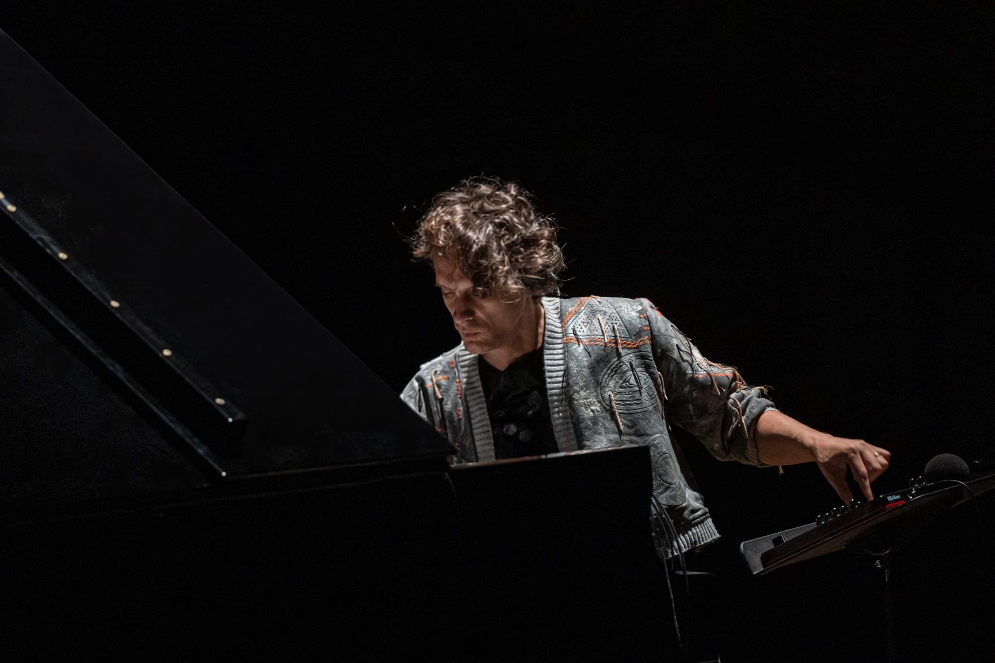 A key technological layer of Piano Odyseja involves real-time sonification and timbre transfer processes developed within Valkov’s performance system. The piano acts as the central controller. Parameters such as pitch, dynamics and articulation influence how external waveform data is transformed in real time. Instead of playing recordings directly, the system reshapes their spectral characteristics so they respond to the pianist’s gestures, allowing scientific signals to become part of an evolving sonic environment.